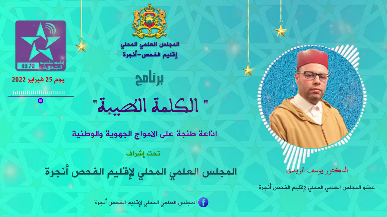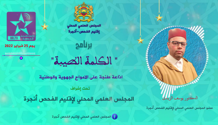 بمناسبة ليلة الإسراء والمعراج، استضاف برنامج ” الكلمة الطيبة” الدكتور يوسف الزيدي، عضو المجلس العلمي المحلي لإقليم الفحص-أنجرة يومه 25 فبراير 2022. ويبث هذا البرنامج بإذاعة طنجة على الأمواج الجهوية والوطنية وتحت إشراف المجلس العلمي المحلي لإقليم الفحص أنجرة.