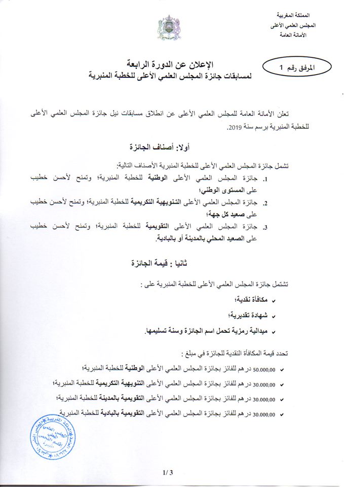 مسابقات المجلس العلمي الاعلى للخطبة المنبرية الدورة الرابعة