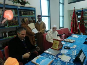 وقد افتتح هذا اللقاء العلمي بآيات بينات من الذكر الحكيم، ثم تدخل فضيلة الأستاذ الدكتور محمد السعيد الحراق المندوب الجهوي للشؤون الإسلامية لجهة طنجة تطوان الحسيمة، وتدخل بعد ذلك رئيس المجلس العلمي المحلي لإقليم الفحص أنجرة فضيلة الأستاذ الدكتور أحمد الوجدي حيث رحبا معا بالضيوف والحضور والمشاركين في هذا اللقاء العلمي، مع الإشارة إلى أهمية هذه اللقاءات باعتبارها تسهم في نشر المعرفة والقيم الإسلامية السامية، كما أشار السيد المندوب الجهوي إلى أهمية التصوف ومكانته في المغرب عبر التاريخ. ثم تدخل السادة الشيوخ والأساتذة أعضاء المجلس العلمي المحلي بإقليم الفحص أنجرة المشاركون في قراءة كتاب المحتفى بها الدكتورة الجليلة كريمة بوعمري وهم: الشيخ أحمد التوزاني، والدكتور عبد اللطيف البغيل، والدكتور يوسف الزيدي، حيث أبرزوا القيمة العلمية لهذا الكتاب باعتباره محاولة في نقل التصوف من النظرية إلى التطبيق، وباعتباره، إسهاماً علمياً صادرا عن امرأة مغربية، وهو أمر له أهميته من جهة ما يحمله هذا الكتاب من آراء المؤلفة في التصوف، وهو ما يشكل إضافة نوعية ذات قيمة كبيرة لأنها مساهمة في إثراء الفكر الصوفي خاص بالمرأة المغربية، كما أشار المتدخلون إلى أهمية التصوف في إحياء القلوب وتزكية النفوس ونشر القيم الإنسانية السامية التي تسمو بالإنسان عن الظلم والجهل المشار إليهما في قوله تعالى: (إنا عرضنا الامانة على السموات والأرض والجبال فأبين أن يحملنها وأشفقن منها وحملها الانسان إنه كان ظلوما جهولا) لذلك فوظيفة التصوف هي عقل الإنسان عن الظلم بالتزكية والتربية، وتعليمه بإرشاده إلى مصادر المعرفة المشار إليها في قوله تعالى: (واتقوا الله ويعلمكم الله) كما أشار المتدخلون إلى دور التصوف في نشر قيم التسامح واحترام الآخر، ولذلك يعتبر التصوف من الثوابت التي تقوم عليها الأمة المغربية بالإضافة إلى العقيدة الأشعرية والمذهب المالكي وإمارة المؤمنين، فهذه الثوابت هي أسس الاستقرار والوحدة الوطنية منذ قيام الدولة المغربية إلى يومنا هذا.